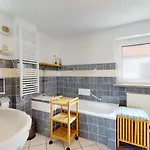 Neben einer Sitzecke und einer Essecke bietet die Unterkunft auch einen Flachbildfernseher mit Satellitenkanälen und ein Fernsehen mit mehreren Kanälen für einen angenehmen Aufenthalt. Die Karls Ferienhaus verfügt über ein Badezimmer mit einer getrennten Toilette, einer Badewanne und einer Dusche. Auch gibt es Handtücher für den Komfort der Gäste.